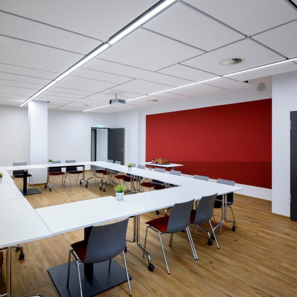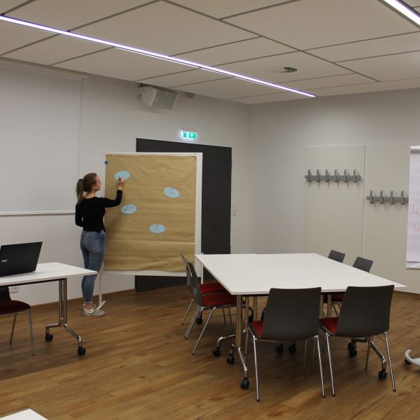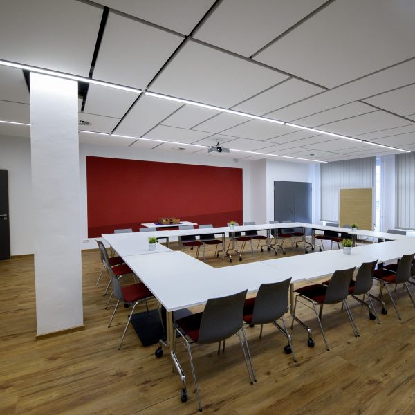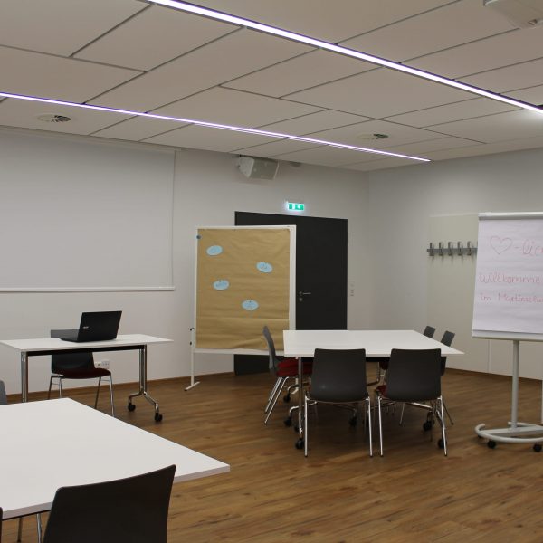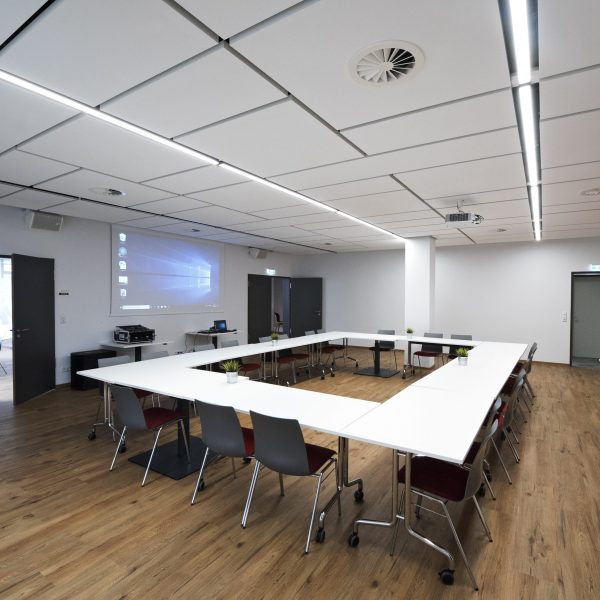 Für Präsentationen lässt sich der Tagungsraum verdunkeln. Eine sehr große Leinwand ist dafür ebenfalls vorhanden. Die Klimaanlage sorgt für angenehme Temperaturen.
